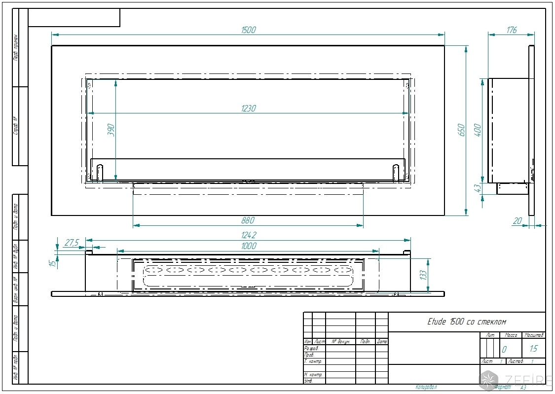 Биокамин встраиваемый Etude 1500 со стеклом (Estetic Flame)