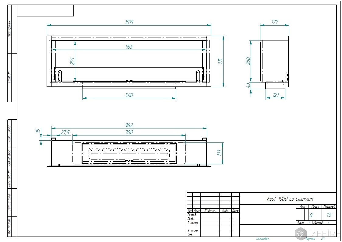 Биокамин встраиваемый Fest 1000 со стеклом (Estetic Flame)