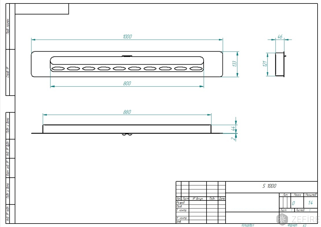 Габариты ВхШхГ: 46х1000х133 мм