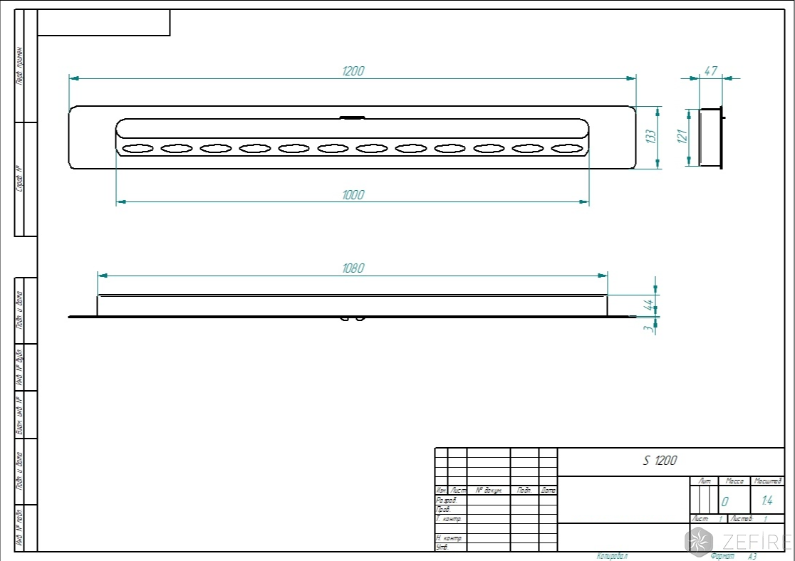 Габариты ВхШхГ: 47х1200х133 мм