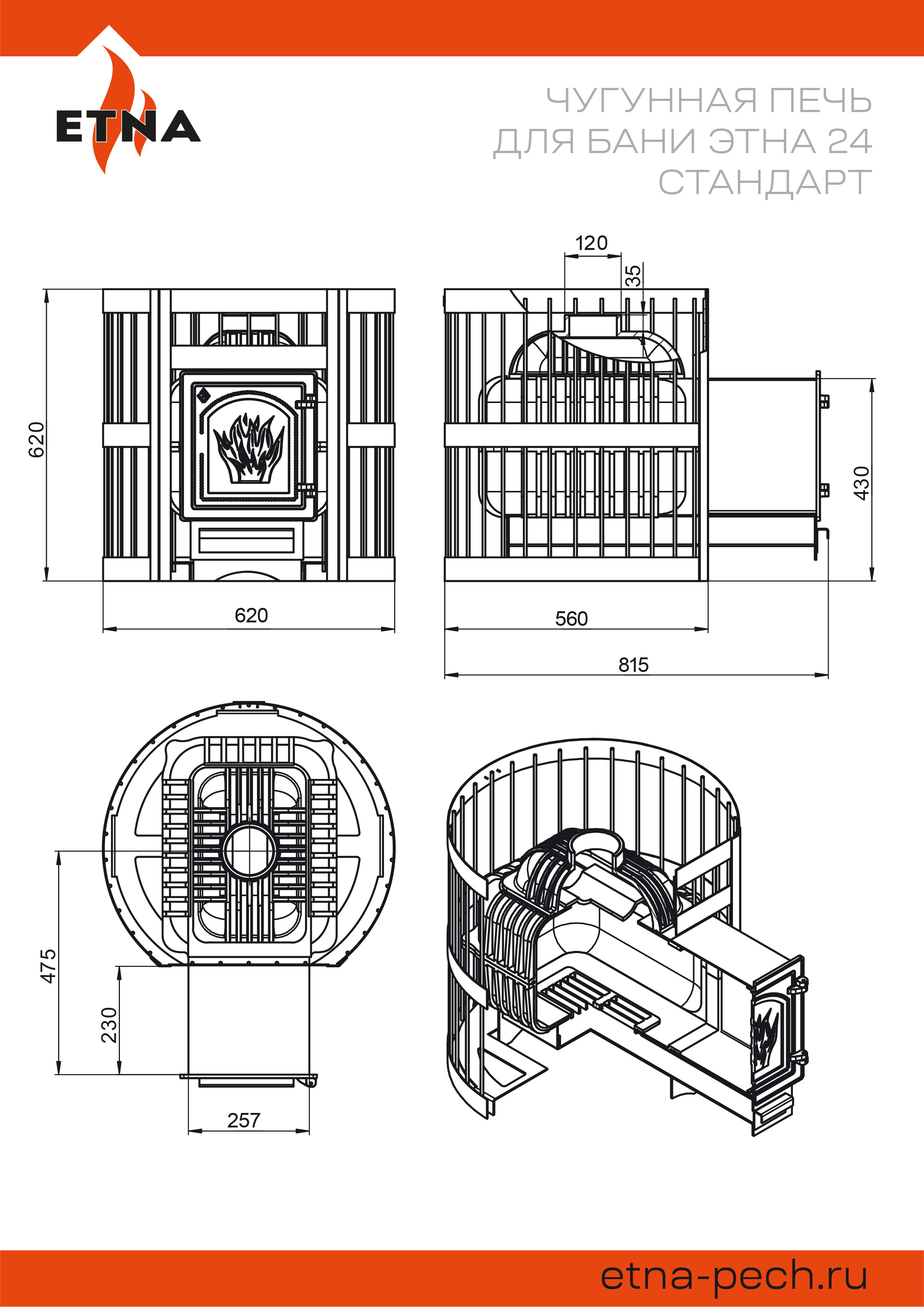 Чугунная печь для бани ЭТНА 24 (ДТ-4С) Стандарт