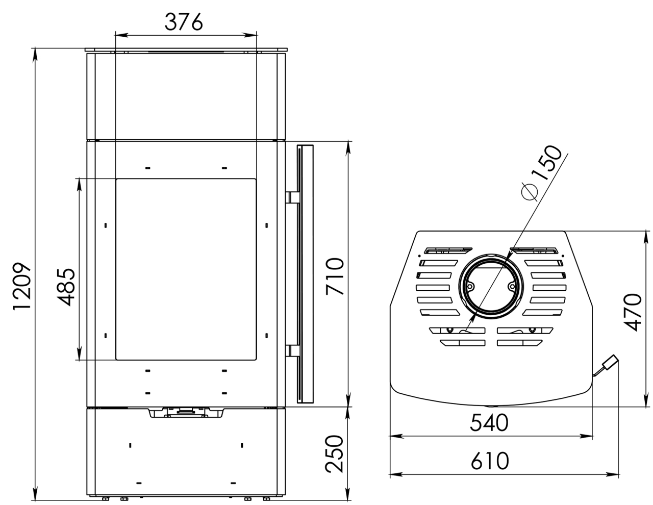 Управление горением регулируется с помощью единого рычага, который обеспечивает подачу кислорода как на первичный, так и на вторичный дожиг. Для сохранения прозрачности стекла предусмотрена система обдува. Дополнительно можно воспользоваться возможностью подвода воздуха извне, чтобы сохранить кислород в помещении, где находится печь.