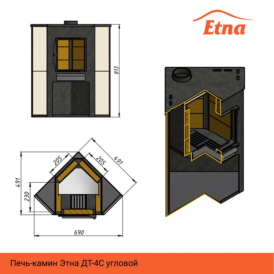 Камин ЭТНА (ДТ-4С) угловой Ø115мм