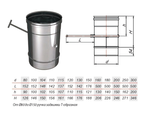 Задвижка на расширителе зеркальная Aisi 304 0.5мм
