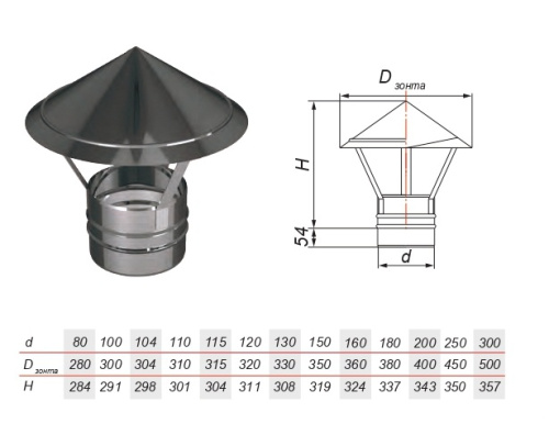 Зонтик на расширителе зеркальный Aisi 304 0.5мм
