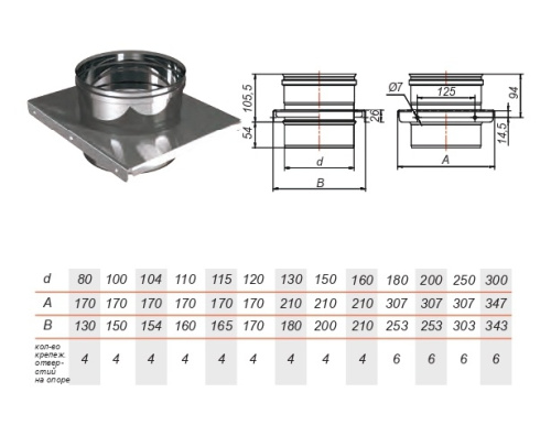 Опора на трубу без изоляции на расширителе зеркальный Aisi 304 0.5мм