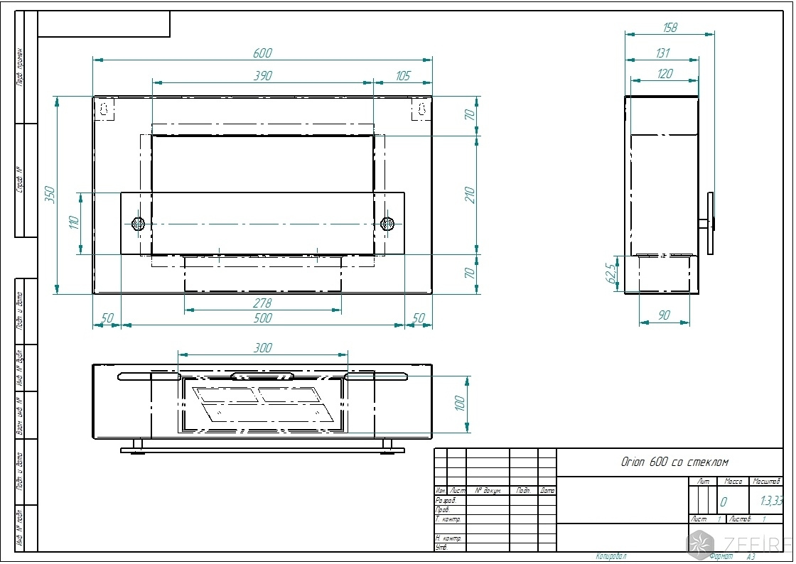 Биокамин Orion 600 со стеклом (ZeFire)