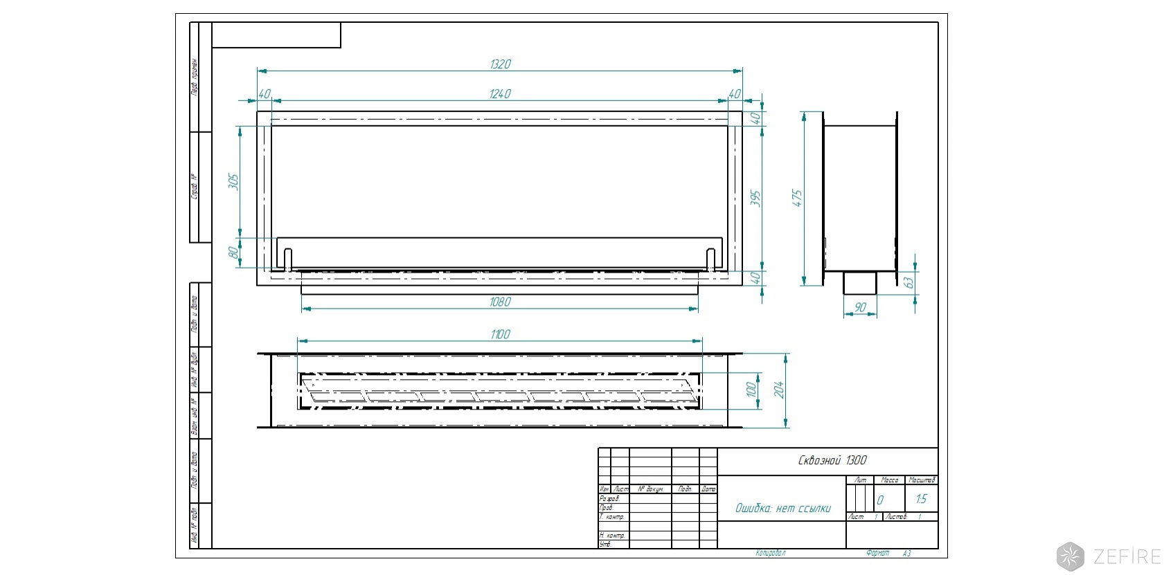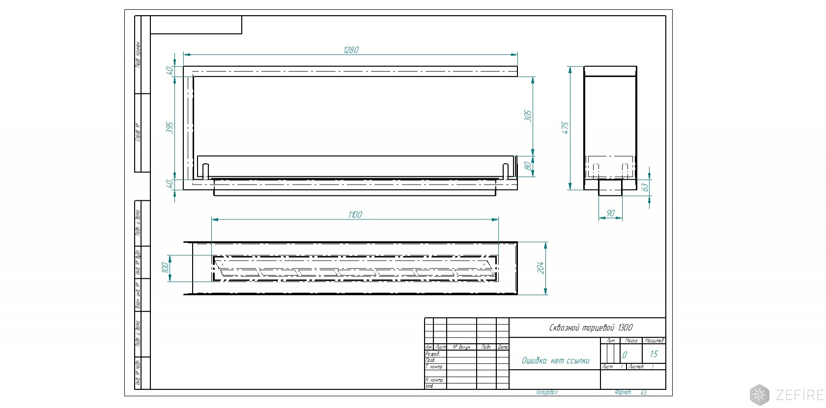 Биокамин торцевой сквозной Standart 1300 (ZeFire)
