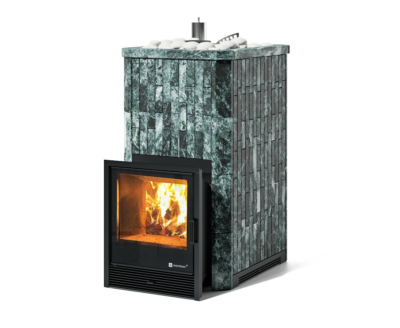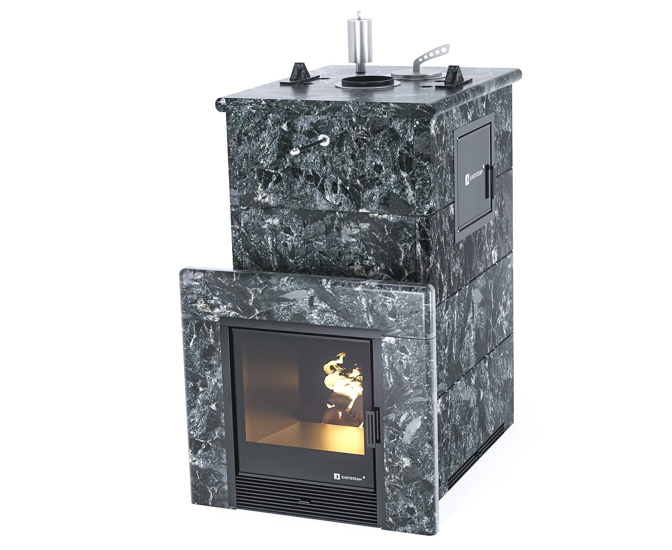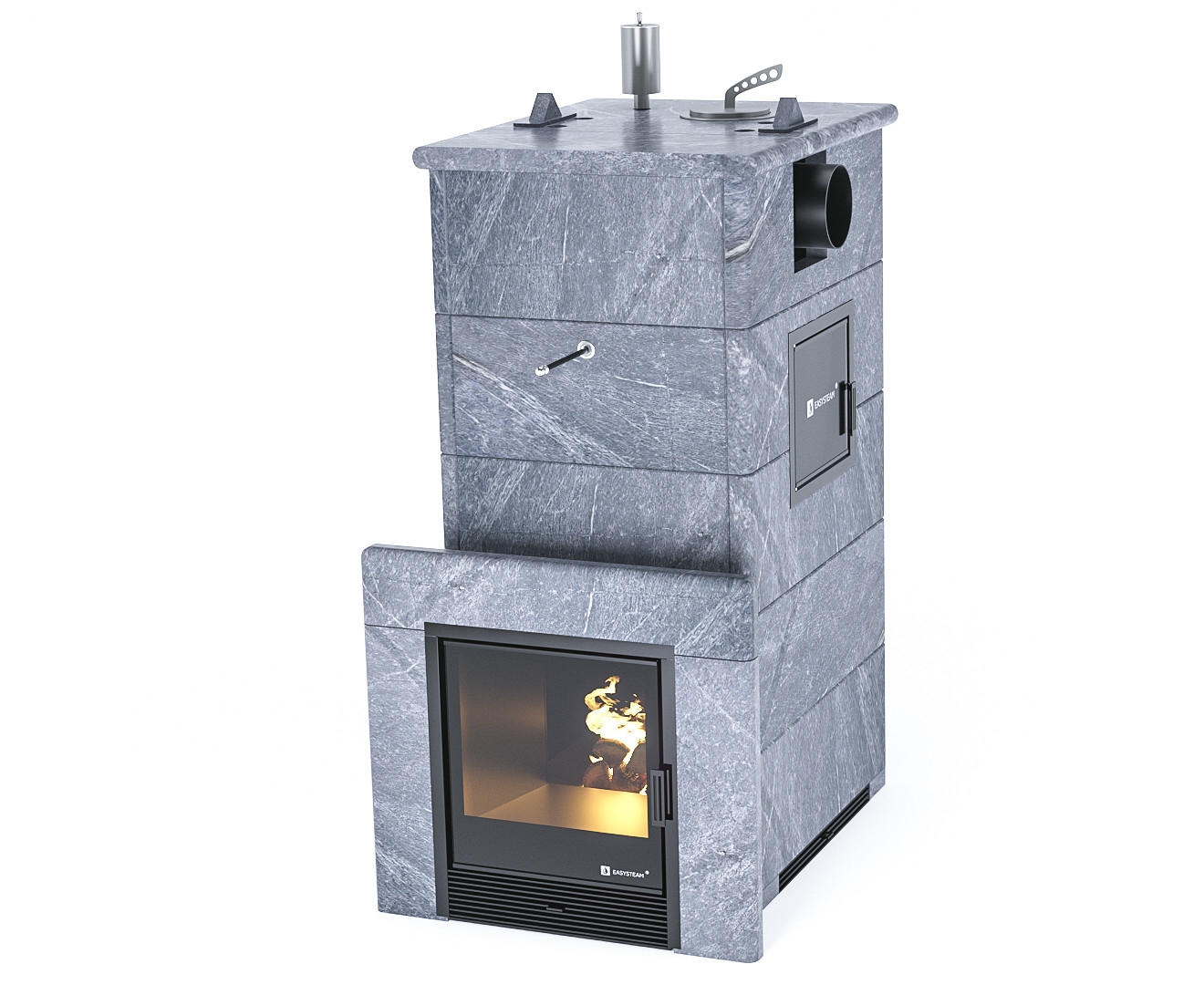 Печь Геленджик М2 полноценном кожухе с боковым подключением Талькохлорит, каменка Справа, дымоход Сп