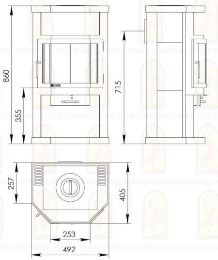 0% Изистим печи в обкладе Печь Геленджик в трехстороннем кожухе с открытым верхом Змеевик 0% По запросу Артикул: 32284