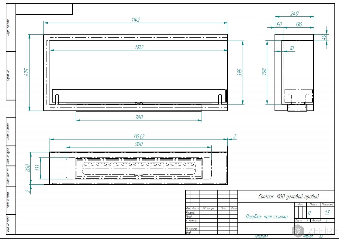 Биокамин встраиваемый Contour угловой 1100 правый (Estetic Flame)